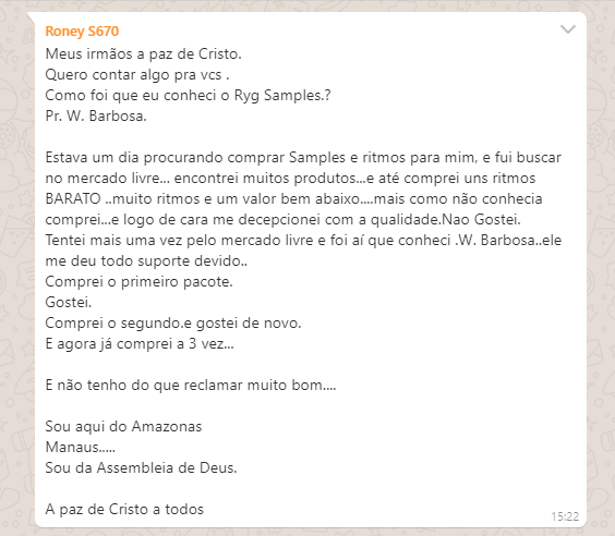 Estou na música há mais de 30 anos e sou o fundador do RITMOS YAMAHA GOSPEL CLUBE [RYG CLUBE] e já ajudei a vários cantores, tecladistas e igrejas a aprimorarem seu período de louvor através da qualidade d nossos ritmos e suporte.